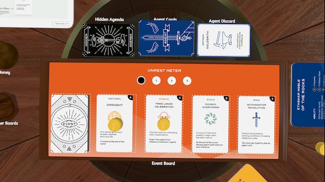Hegemony is a three to six player semi-cooperative game where each of you play as a noble of one of the three Ethshars. This game will be a unique experience no matter how many times you play, with unique goals and events that can change the entire flow of the game. Will you be a generous and fair noble or will you be corrupt and betray your people? It's up to you to find out in Hegemony.