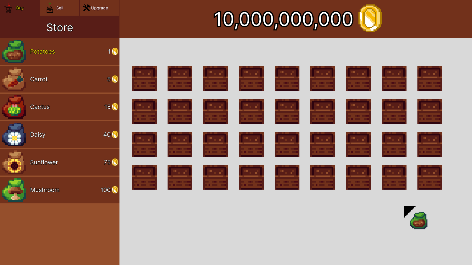 We decided to create a basic idle game that revolved around growing plants in planter boxes that you